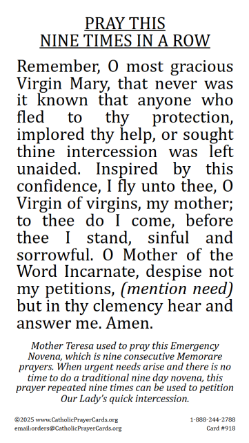 © 2025 Catholic Prayer Cards, LLC - Tallahassee, FL unless otherwise noted.