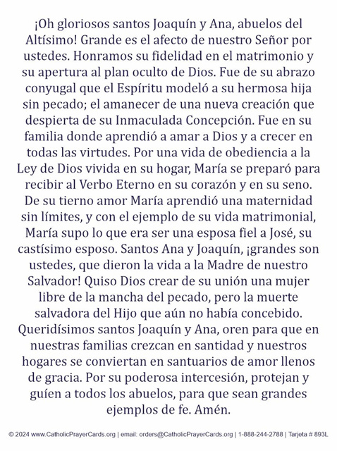 SPANISH - Sts. Joachim and Anne Prayer Card